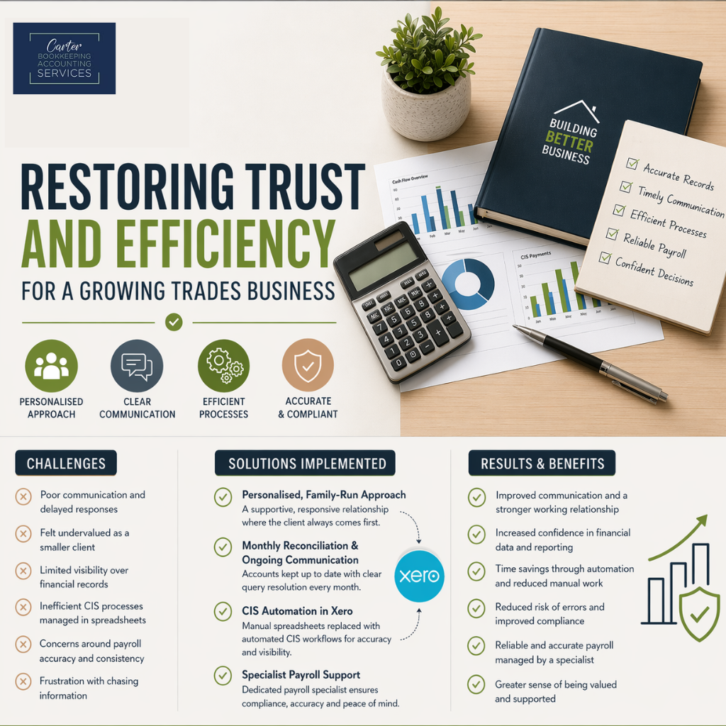 By moving away from a larger, less personal firm to a dedicated, family-run bookkeeping service, the client gained not only improved financial processes but also the level of communication and care they had been missing. With streamlined systems and ongoing support, they are now better equipped to manage their finances and focus on growing their business.
